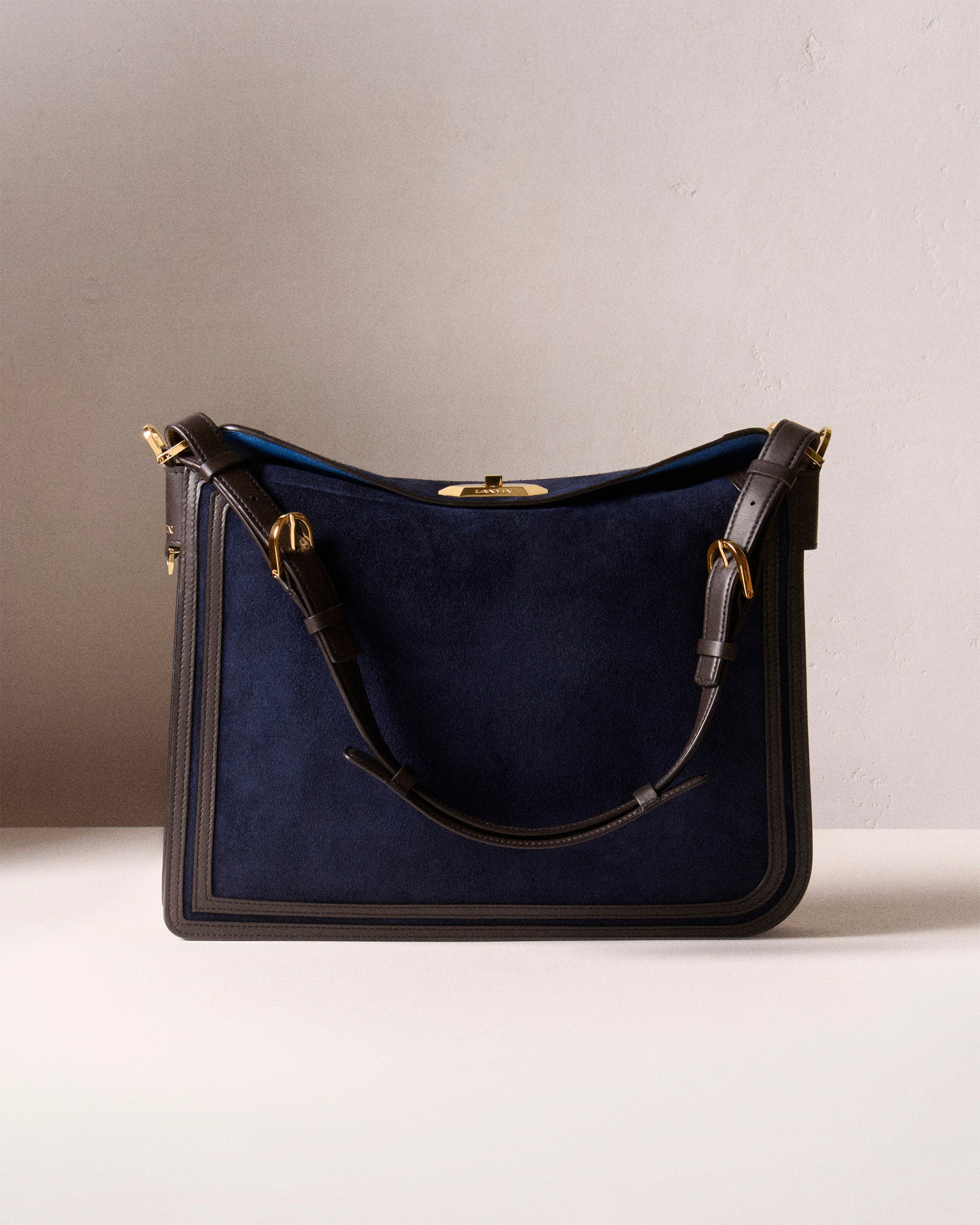 Crafted in suede or nappa leather and finished with gold hardware, the Compagnon bag reveals Jeanne Lanvin’s initials through the asymmetry of its uniquely shaped corners.